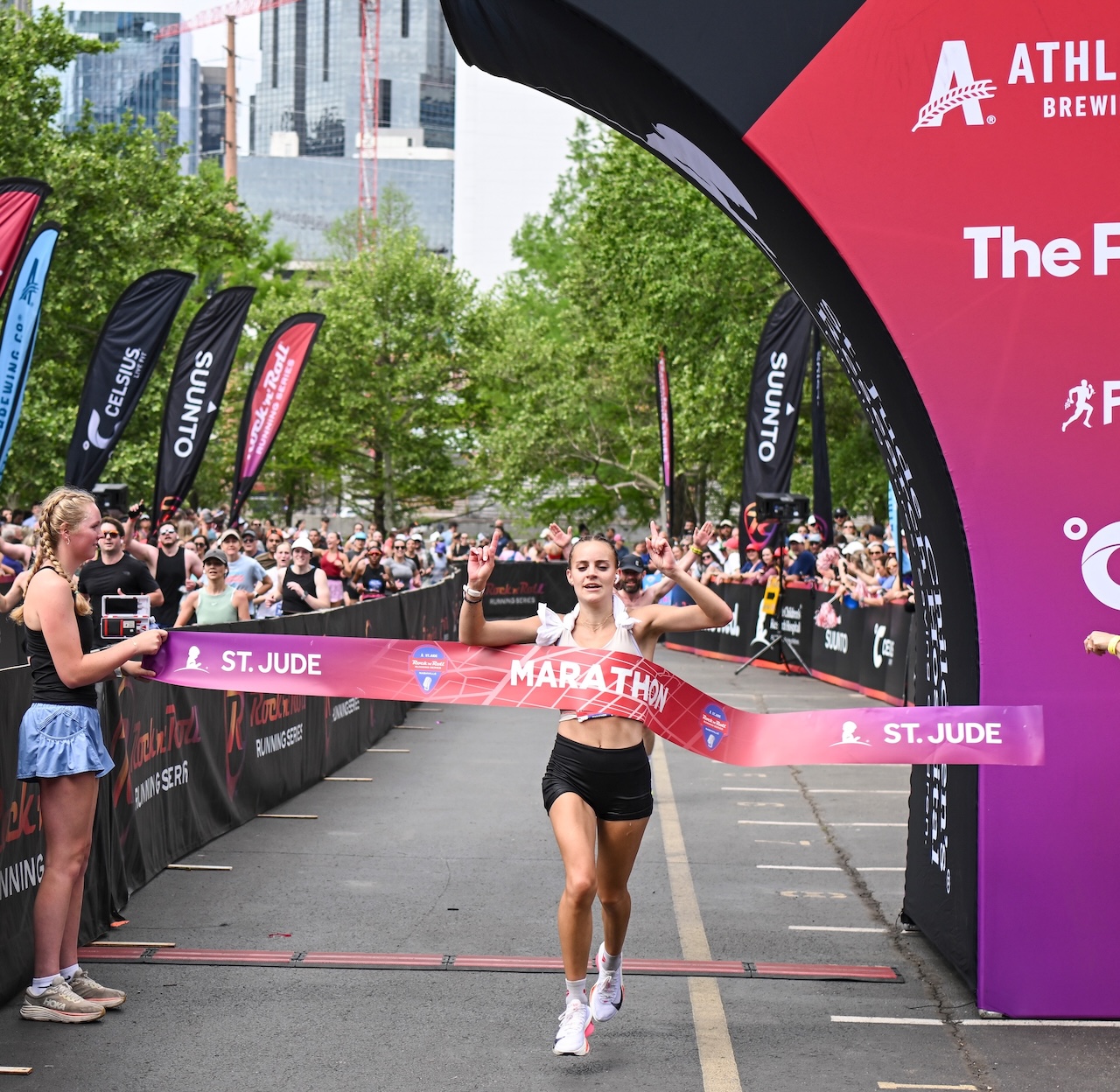 Krueger overcame an early challenge to secure the win. “I struggled for a little bit there, and I didn’t know how I was going to do many more miles,” she said. “I took a caffeine gel around then, and it started hitting, so I started feeling a lot better.”